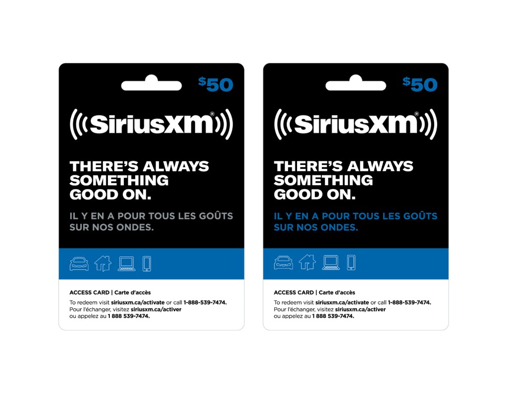 Refine by Price. Share commercial-free music plus sports news talk and entertainment with family and friends a 50 value towards any SiriusXM subscription. 50 Gift Card For 50.
